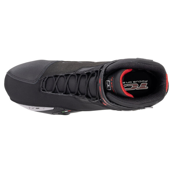 De TCX *Rush WP* is een waterdichte, sportieve, moderne veterlaars die zich vooral in het zonnige, warmere jaargetijde van zijn beste kant kan laten zien. Maar ook in de mooiste tijd van het jaar voor motorrijders kun je worden verrast door een regenbui. In dit geval kunt u de rit voortzetten met drogen voeten. Deze laars is licht en zicht bijzonder prettig aan de voet.