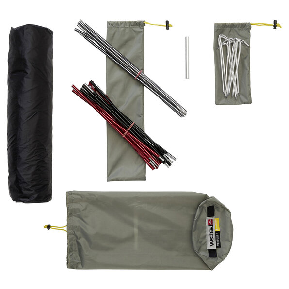 - Binnentent: 100% polyamide (polyester 70D, 185T, waterafstotend, ademend)