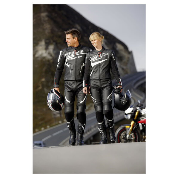 Particulièrement souples, les vêtements en cuir épousent parfaitement les formes du corps et garantissent ainsi un bon maintien en place des protecteurs. Il est donc toujours nécessaire de choisir une taille bien ajustée lors de l'achat de vêtements en cuir.
